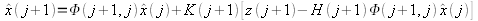 Rozdíl mezi predikovanou a změřenou hodnotou se použije ke korekci hodnoty predikované na základě váhové matice zisku K. Ta respektuje situaci, ve které se nacházíme – v okamžiku, kdy predikce není kvalitní, tak se na korekci spoléháme více.