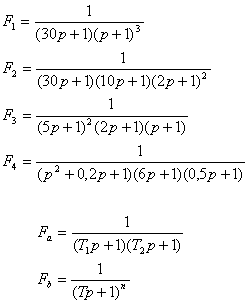 Je dán spojitý přenos regulované soustavy ( F1 až F4, každé podskupině bude určen jeden přenos). Dále jsou dány dva typy aproximačních přenosů ( Fa , Fb). Určete hodnoty konstant aproximačních přenosů a porovnejte přechodové charakteristiky.
