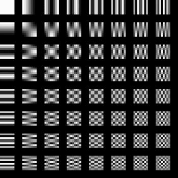 Tuto kosinusovou funkci se snažíme proložit jak v horizontálním, tak i ve vertikálním směru a tak dostaneme výstupní frekvenční obraz signálu. Vstupem do výpočtu je dvourozměrná čtvercová matice rozměru N s hodnotami s(m,n).