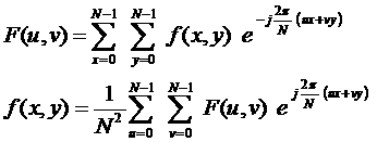 Jelikož v tomto předmětu se zabýváme 2D obrazovými informacemi, uveďme přímo 2D tvar, kdy vstupní obraz je dvourozměrná matice, a nad ní má DFT následující tvar: