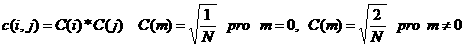 Další proměnný koeficient C uvnitř vzorce pro DCT se počítá jako: