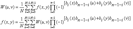 Walshova transformace funkce f(x) pro N=2n je definovaná vztahem: