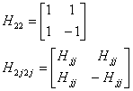 Pro názornost obecná konstrukce Hadamardovy matice [H2N] řáddu 2N vycházející z matice řádu N podle vztahu