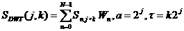 n-tý vzorek k-té posunuté verze diskrétní vlnky, jež je v měřítku