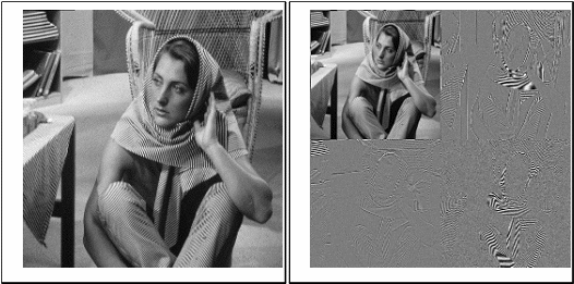Obr. 4. Příklad dvouúrovňové 2-D vlnkové transformace