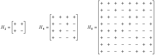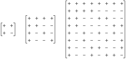 Obr. 12. Hadamardové matice pro k = 1, 2, 3.