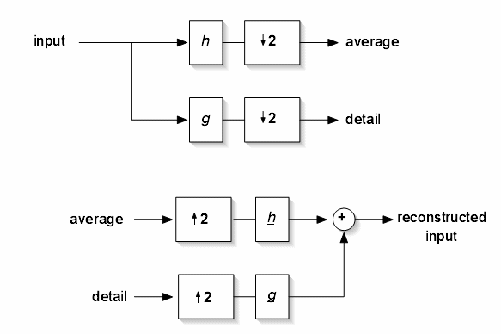 dolnopropustný filtr. Výstupní signály těchto filtrů jsou detaily a